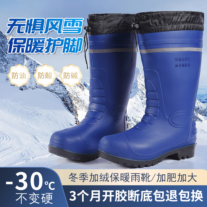 食品冷库棉水靴 加厚防水雨鞋 保暖加棉雨靴男女式 高筒防滑耐油胶鞋