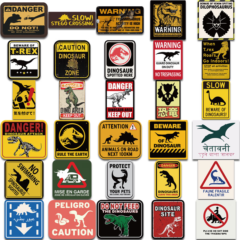 60张恐龙路标贴纸霸王龙笔记本手机壳电脑ipad防水行李箱水杯装 饰