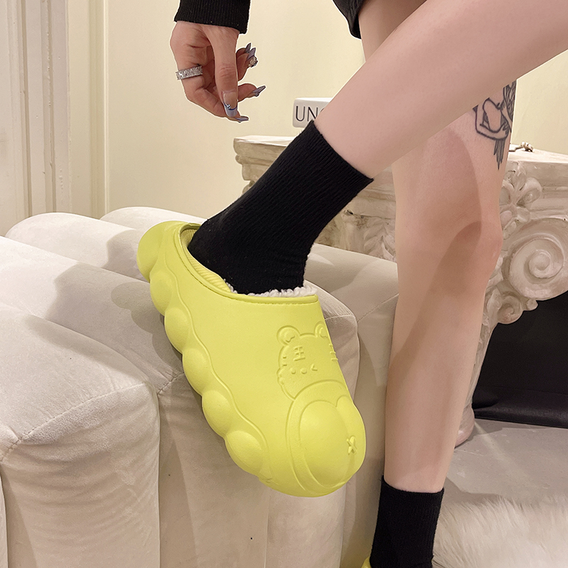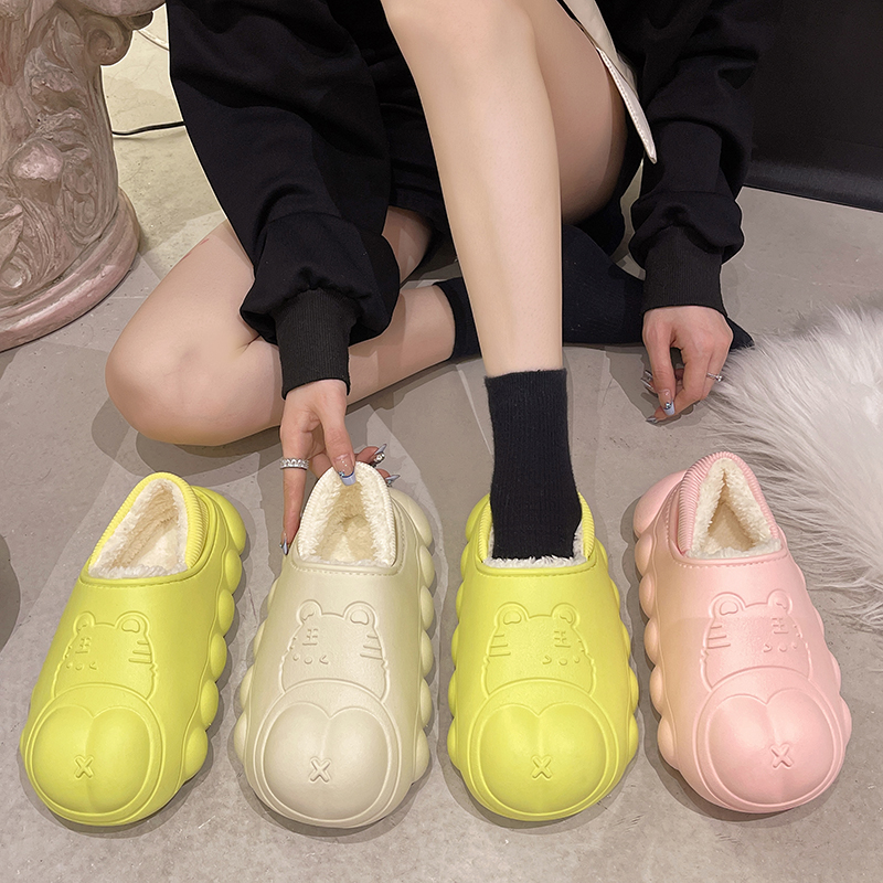 厚底加绒保暖防寒可爱防滑室内套脚拖 情侣款 防水棉拖鞋 女2025冬季