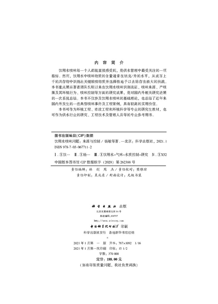 饮用水嗅味问题来源与控制杨敏等著科学出版 社9787030677112