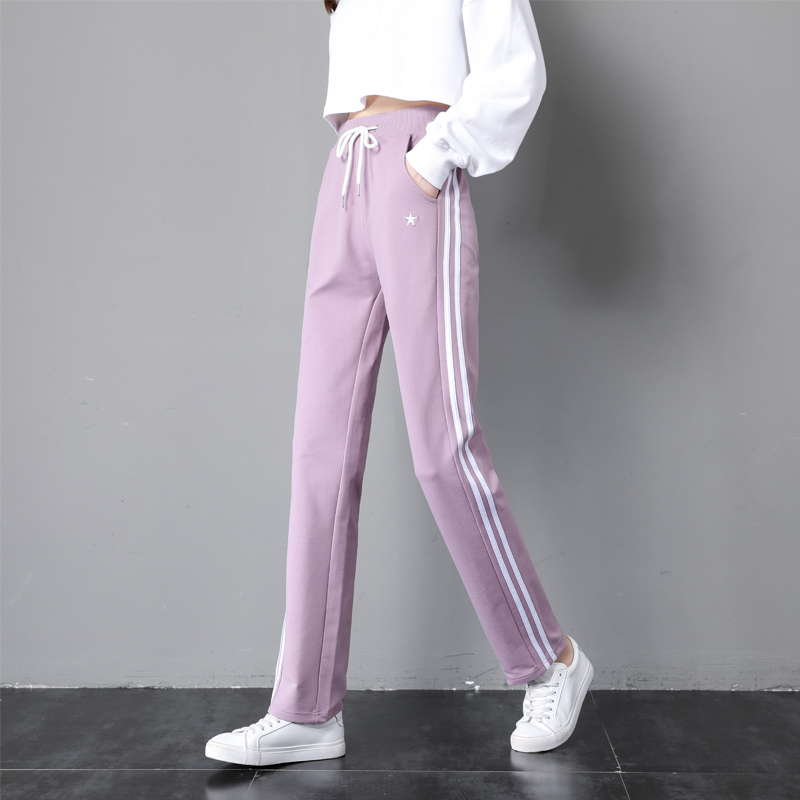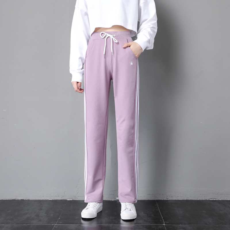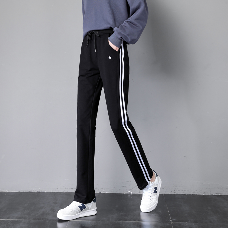 休闲裤 女士运动裤 子宽松直筒两条杠星星ins弹力棉 薄款 鲈梦春秋季