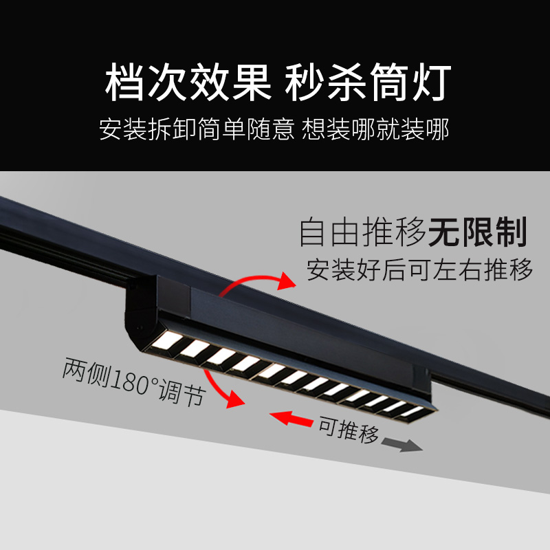 商用轨道灯LED射灯轨道长条补光灯明装 二线路轨灯店铺导轨灯超亮
