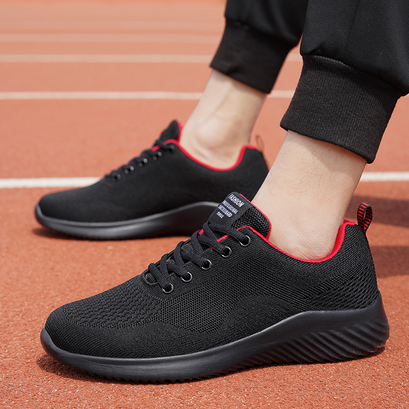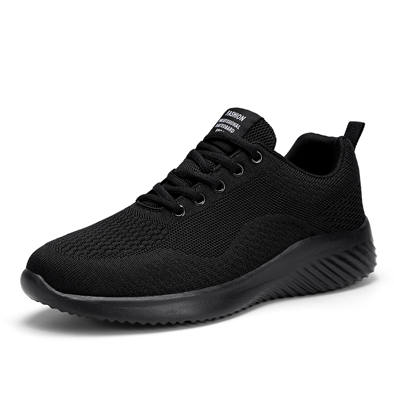 男鞋 黑色潮鞋 2025新款 防滑薄款 飞织透气网面百搭运动休闲男士 夏季