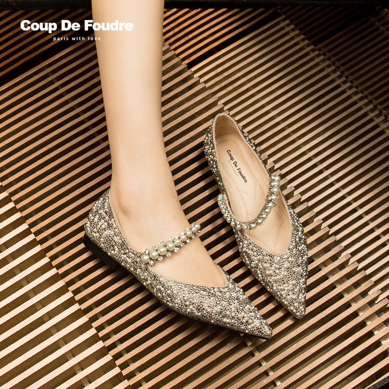 女2025年夏季 小香风玛丽珍鞋 新款 平底浅口单鞋 法式 热风银色晚晚鞋