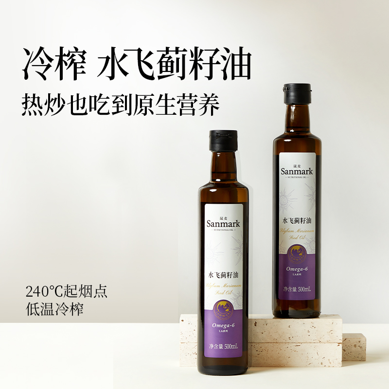 低温冷榨初榨奶蓟籽油食用油玻璃瓶 水飞蓟籽油500ml 晟麦