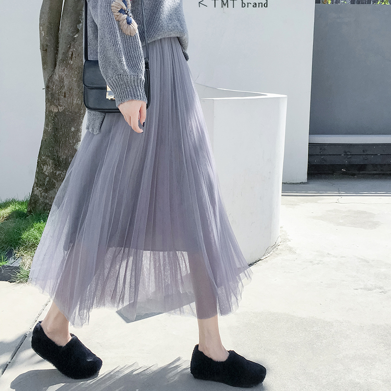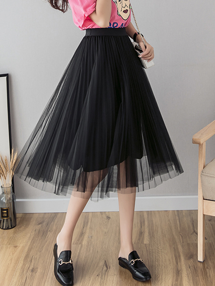百褶裙 高腰a字裙遮跨显瘦小个子网纱中长款 纱裙新款 女半身裙夏季