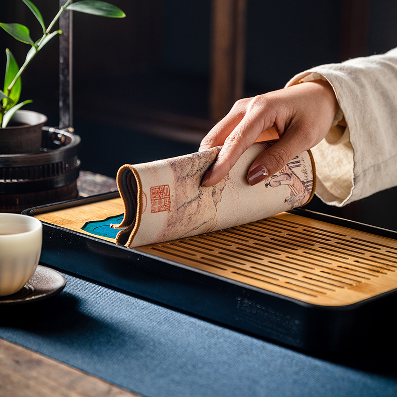 日式 加厚毛绒棉麻吸水茶巾茶道配件高档彩绘禅意茶布桌布简约抹布