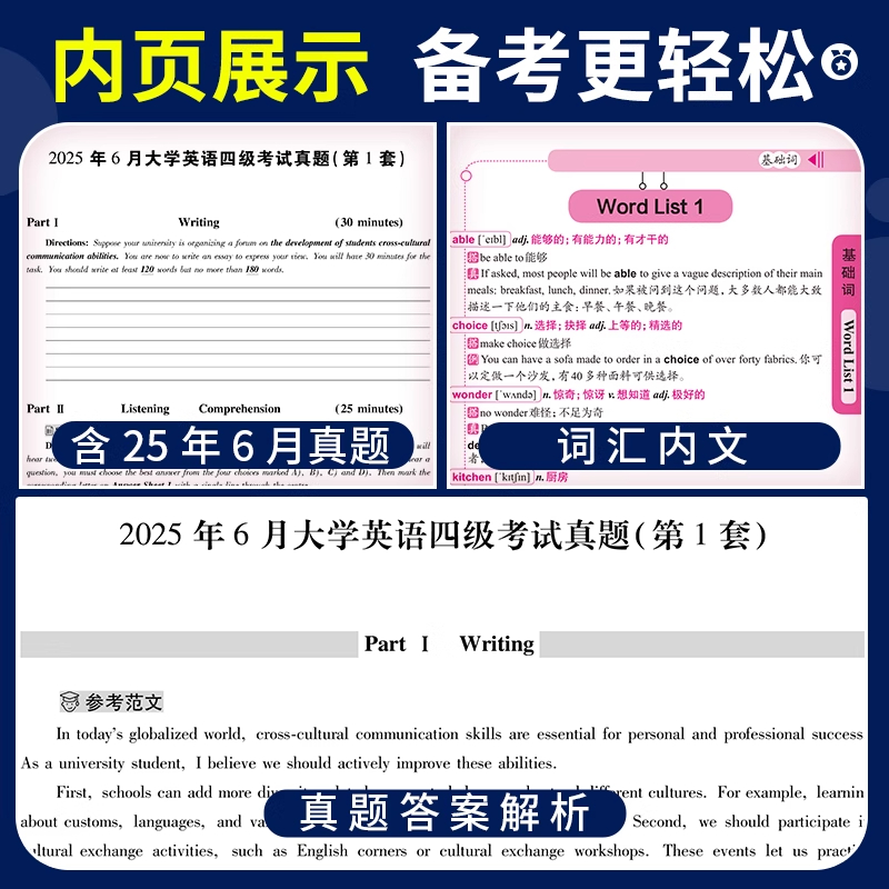 2025年12月大学英语四级六级真题试卷 标准预测试卷英语六级备考资料6级4级词汇书单词四级英语真题试卷逐句精解写作翻译听力