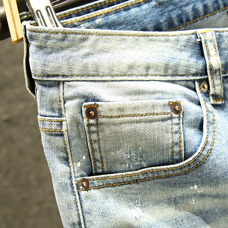 破洞牛仔短裤 子弹力浅色水洗中裤 男2025年新款 五分裤 潮牌修身 夏季