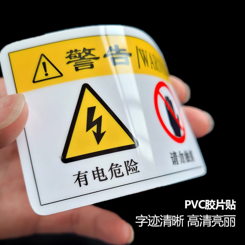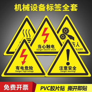 当心触电注意安全机器标识贴纸机械设备标签安全标识警示贴PVC胶片贴当心高温伤手烫手有电危险三角警告贴纸