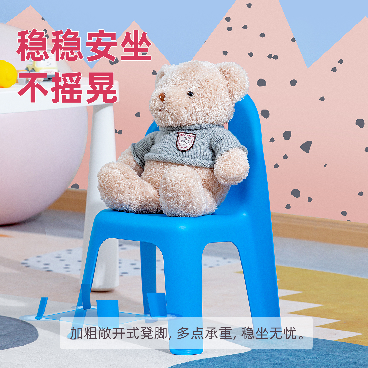 茶花靠背塑料凳子家用椅子餐桌凳防滑凳靠背小板凳防滑小椅子加厚