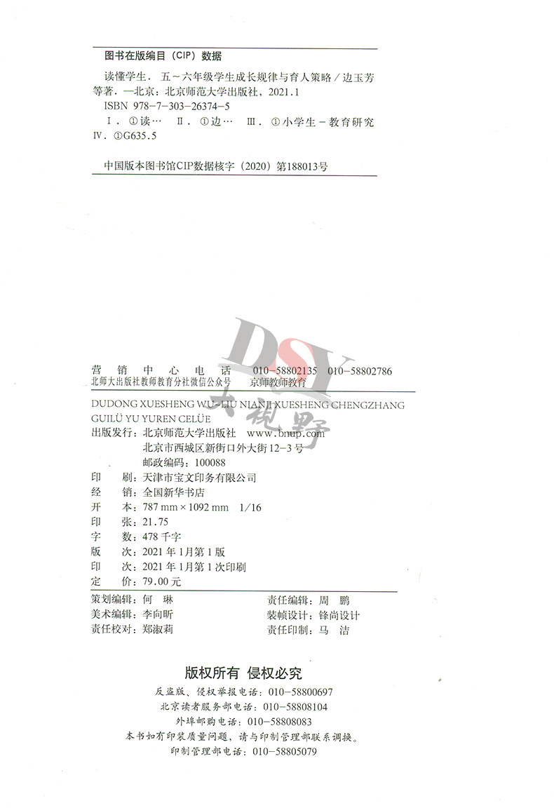 道德品质 北京师范大学 读懂学生 边玉芳等著 学生学习品质 六年级学生成长规律与育人策略 正版 五 自我管理 综合素养 包邮