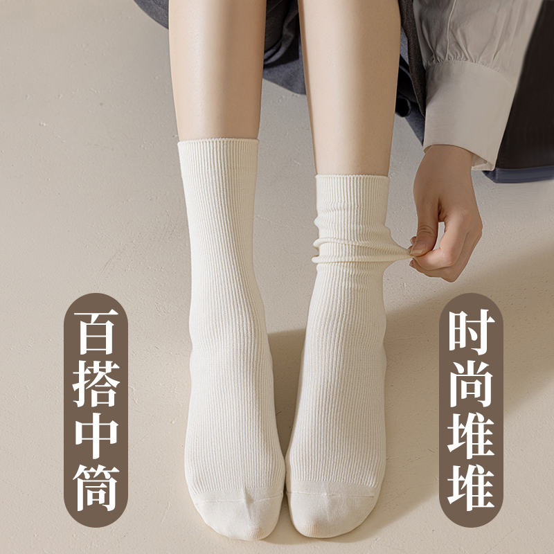 雪地靴鲨鱼裤 乐福鞋 长袜子 纯棉中筒搭配小皮鞋 棕色堆堆袜女秋冬季