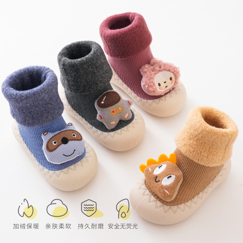 宝宝地板袜冬季 袜 卡通加绒加厚新生婴儿室内学步袜隔凉儿童防滑鞋