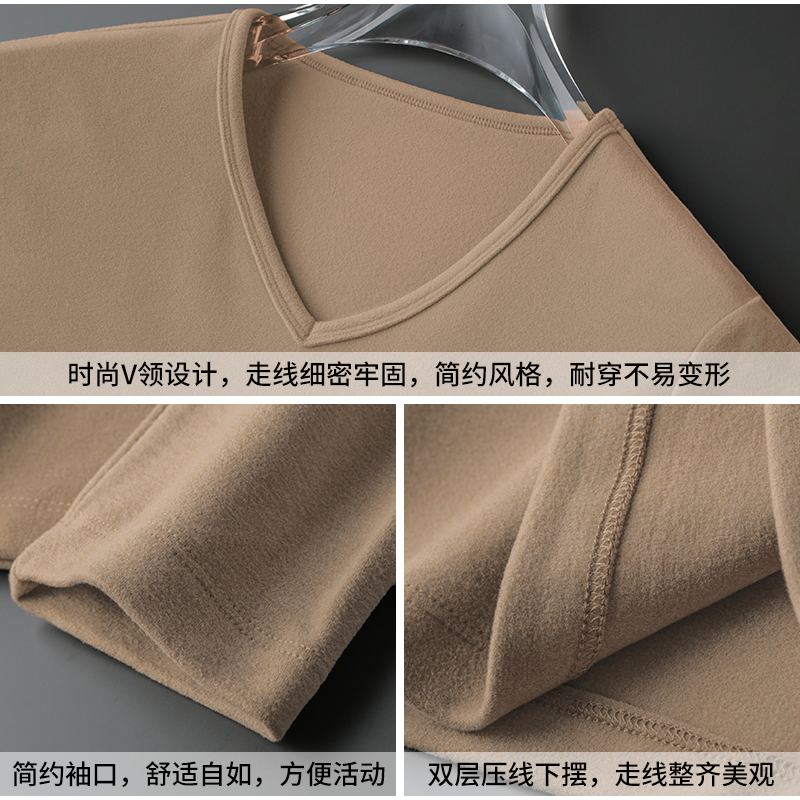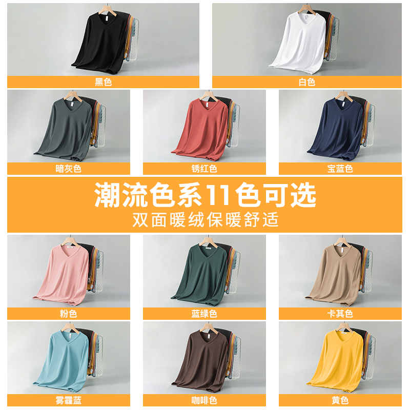 双面绒V领纯色上衣服秋冬潮流内搭保暖小衫 t恤男装 长袖 德绒打底衫