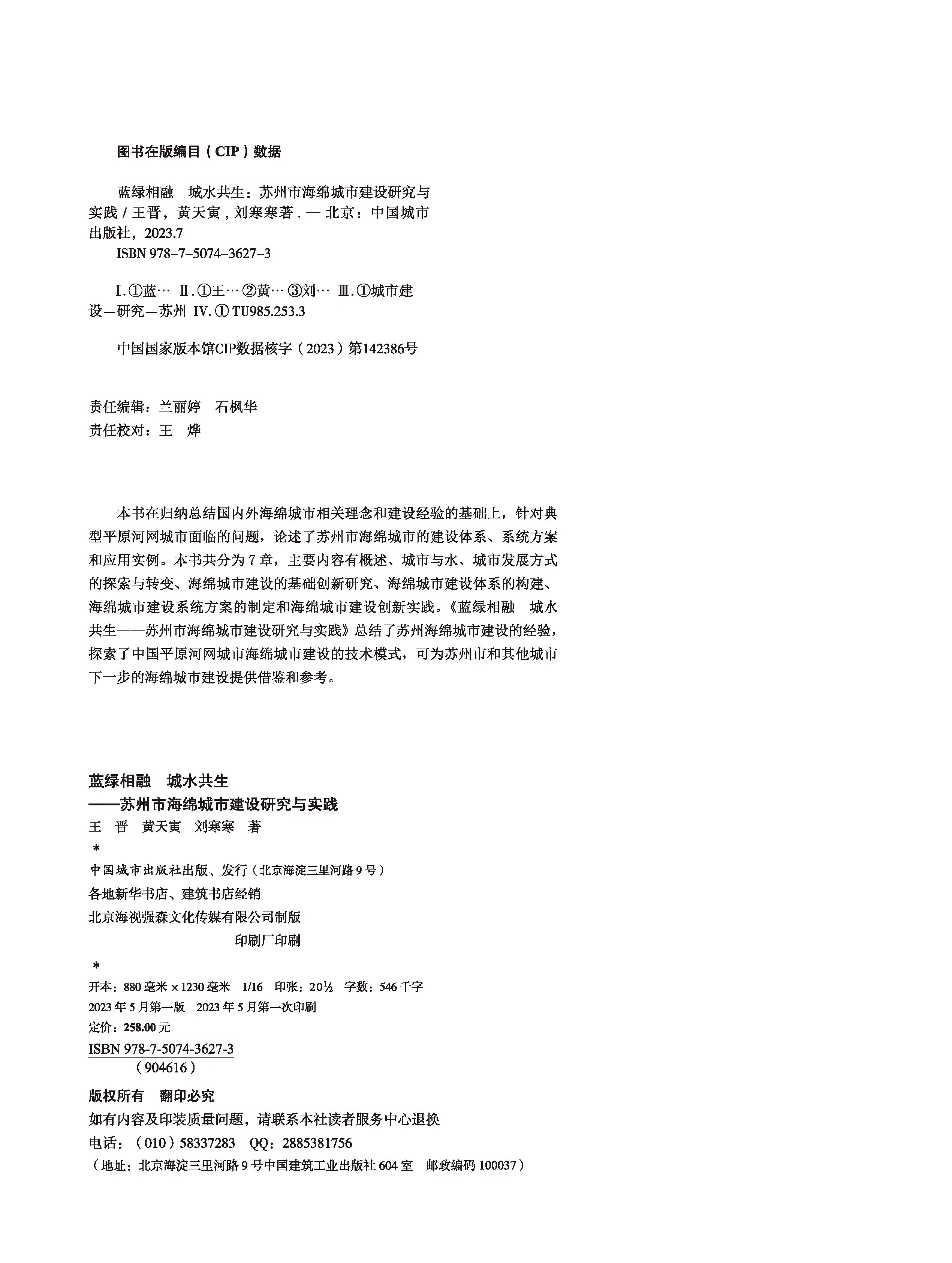 中国城市出版 9787507436273 城水共生 黄天寅 刘寒寒 王晋 蓝绿相融 苏州市海绵城市建设研究与实践 社 正版 著 包邮