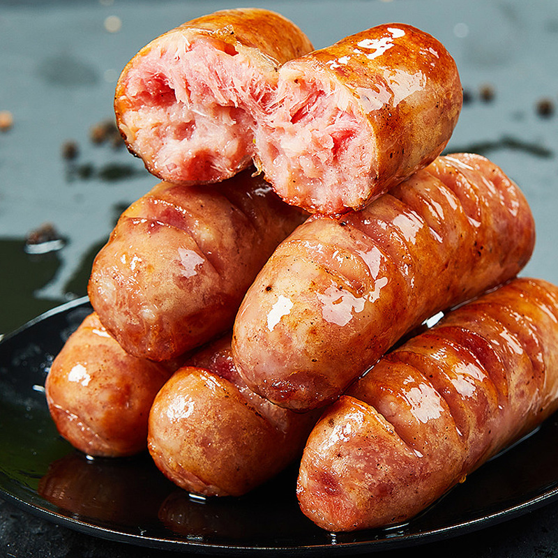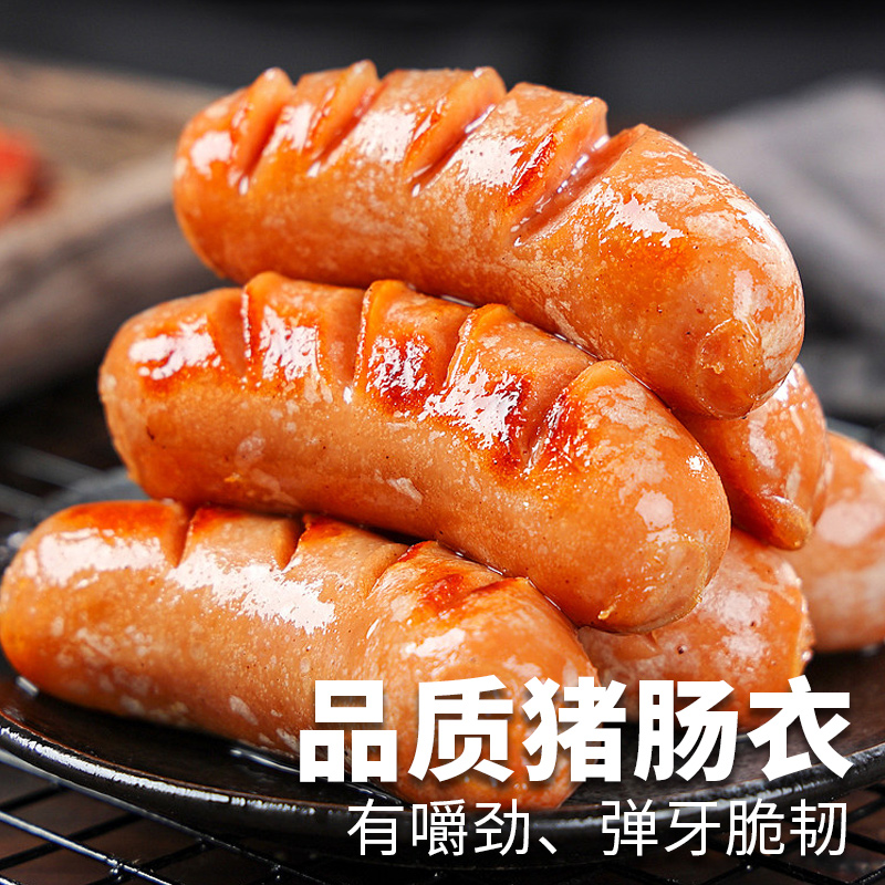 火山石烤肠商用批发摆摊脆皮纯地道肉肠70克大肉粒200支热狗香肠