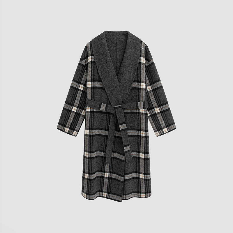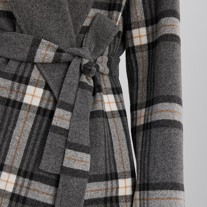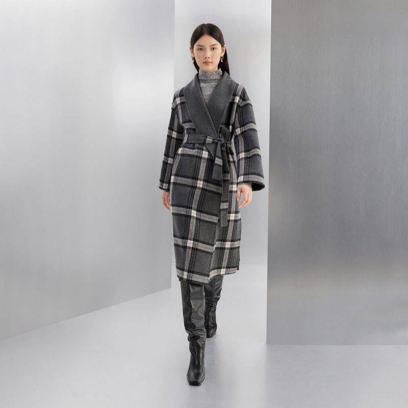 冬呢大衣BDQ4AD1169 播格子羊毛呢大衣女商场同款 播奥莱