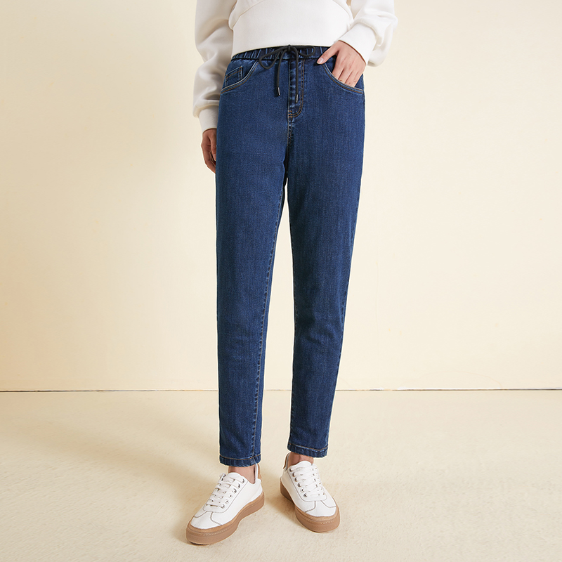 牛仔裤 百斯盾官方女装 冬季 新款 九分锥裤 保暖鸭绒修身 羽绒裤