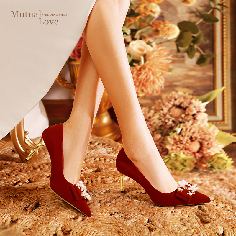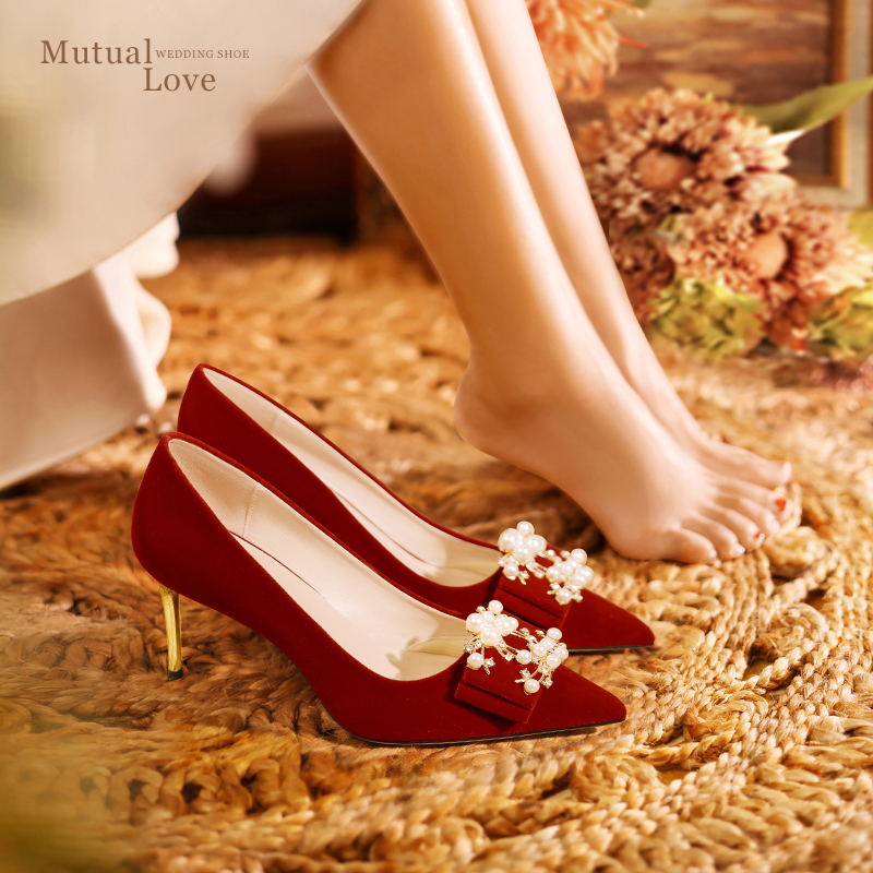 红色高跟不累脚高级感旗袍秀禾鞋 婚鞋 主婚纱新娘鞋 冬季 女2025新款