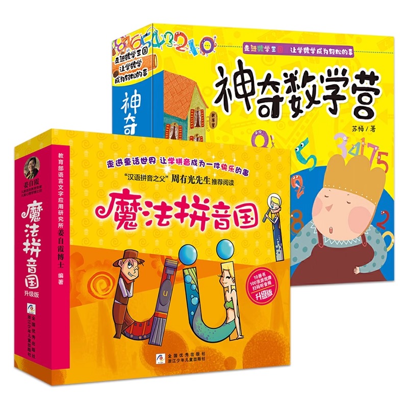 赠送实用数学卡牌包含数字卡形状卡方位卡 扫码 神奇数学营全彩全套 6岁幼儿启蒙拼音图 可听音频 魔法拼音国全套共20册JST适合3