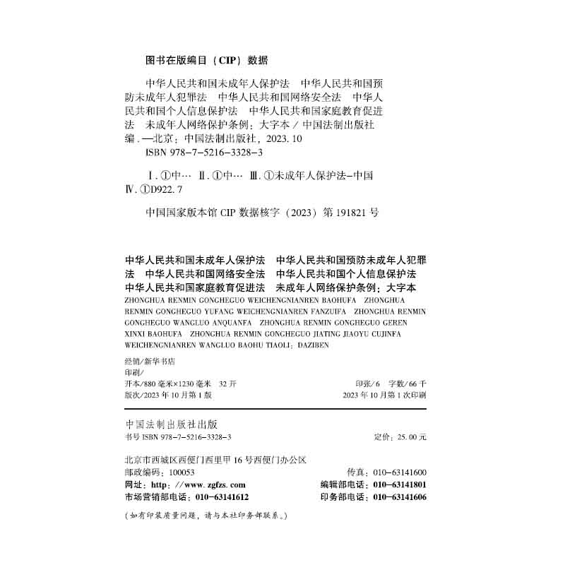 预防未成年人犯罪法 网络安全法 大字本 2025适用 六合一 未成年人网络保护条例 未成年人保护法 庭教育促进法 正版 个人信息保护法