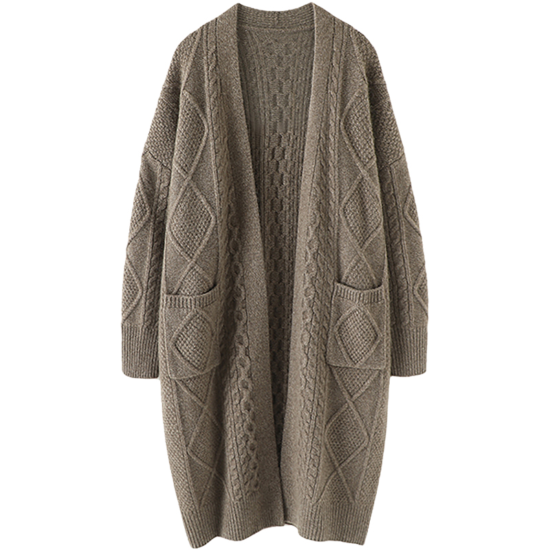 摩安珂 绵羊毛山羊绒高智感扭绳绞花肌理短款 MOCO针织衫 开衫