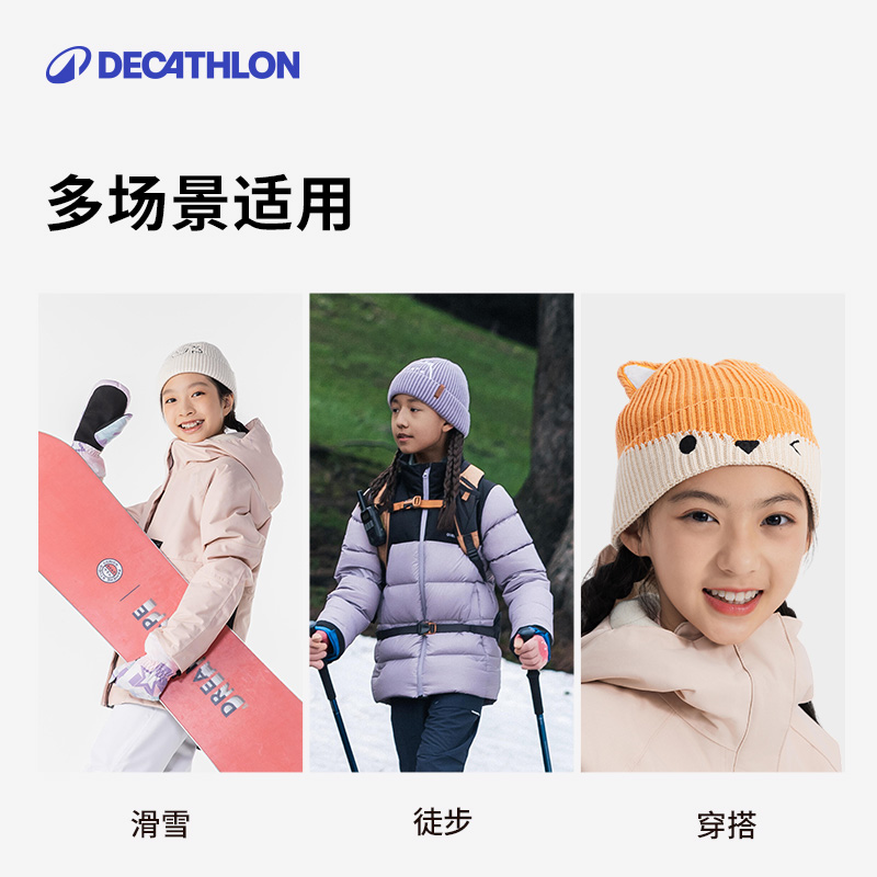 迪卡侬滑雪帽子男女童成人保暖可爱毛线帽秋冬户外高弹柔软KIDK