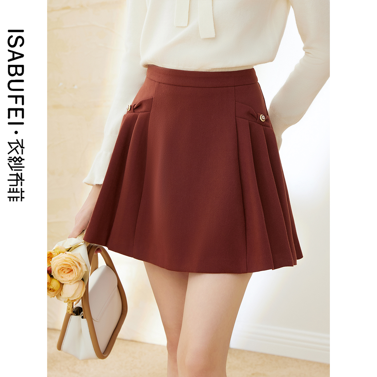 黑色a字显瘦短半身裙 朗姿羊毛半裙气质高级感2025新款 免定金