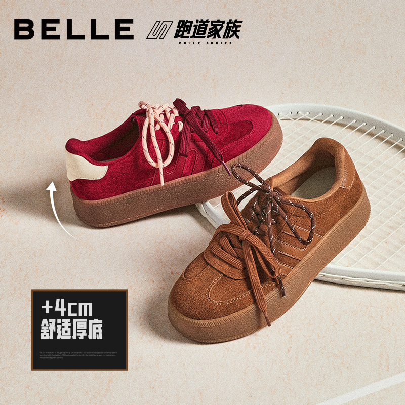 双11预售 休闲小白板鞋 张凌赫同款 增高鞋 预 百丽板栗厚底德训鞋