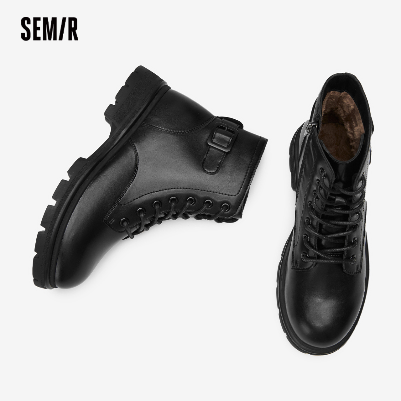 靴子 中帮休闲皮靴中高帮英伦风通勤工装 马登黑色马丁靴男款 秋冬季