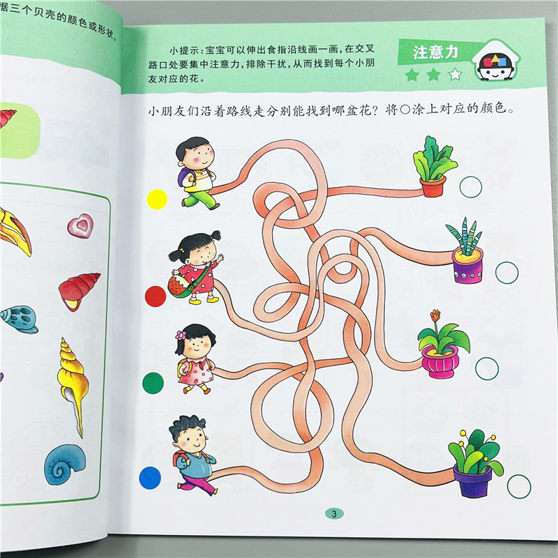 儿童我上中班了下思维游戏书潜能开发幼儿园3 6岁宝宝数学启蒙专注力训练宝宝启蒙早教书绘本中班幼儿园数学趣味益智游戏连线书