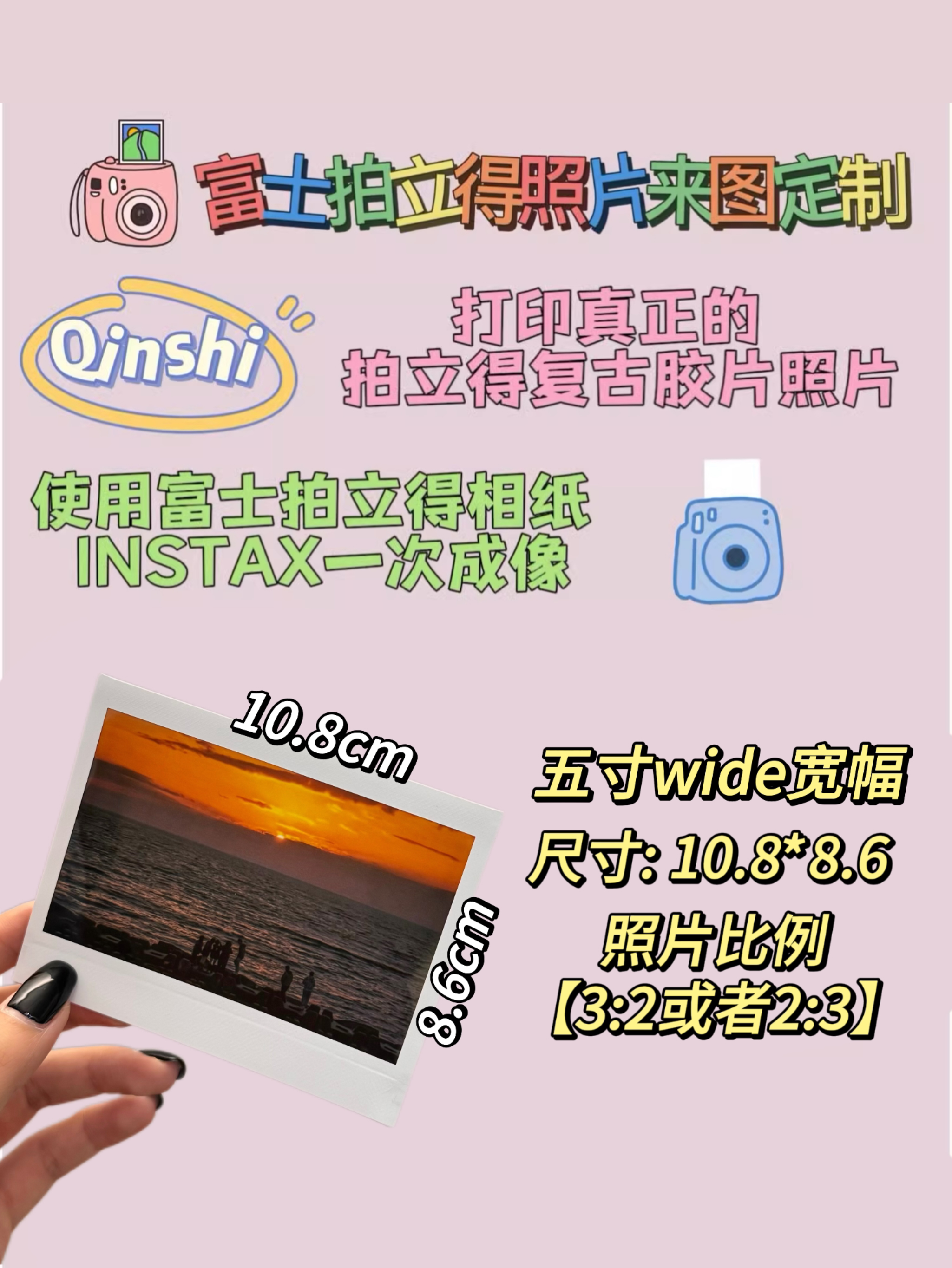 富士拍立得wide宽幅5寸白边适用DIY打印合照全家福毕业照五寸冲印冲洗爱豆明星周边lomo照片墙复古胶片情侣照