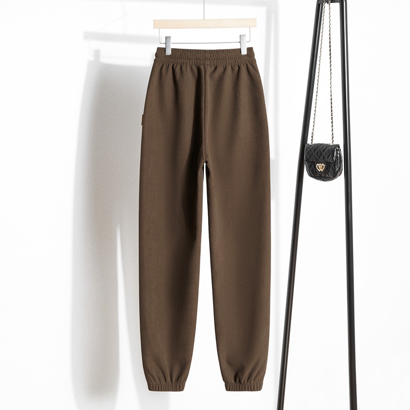 2025冬装 卫裤 新款 松紧高腰加绒保暖九分哈伦裤 女装 她池束脚休闲裤