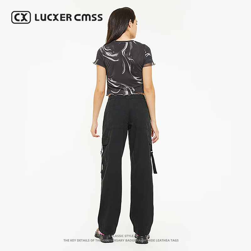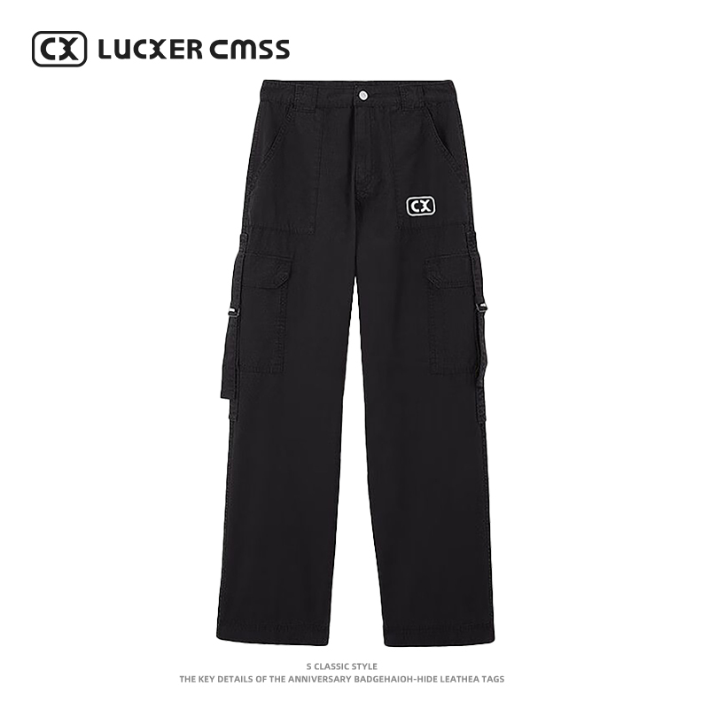 黑色宽松PU皮裤 LUKER CMSS高街潮牌休闲百搭男女同款