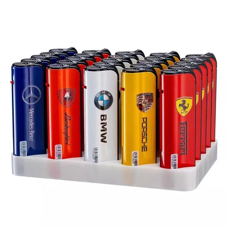 防风充气一次性火机防爆潮流金属蓝焰直冲创意车标耐用金属打火机