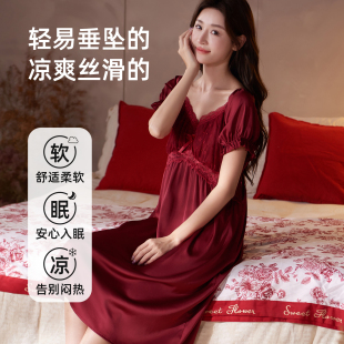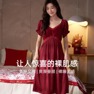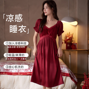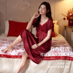 睡裙凉感冰丝红色本命年家居服 性感蕾丝短袖 乐姿梦新款 睡衣女夏季