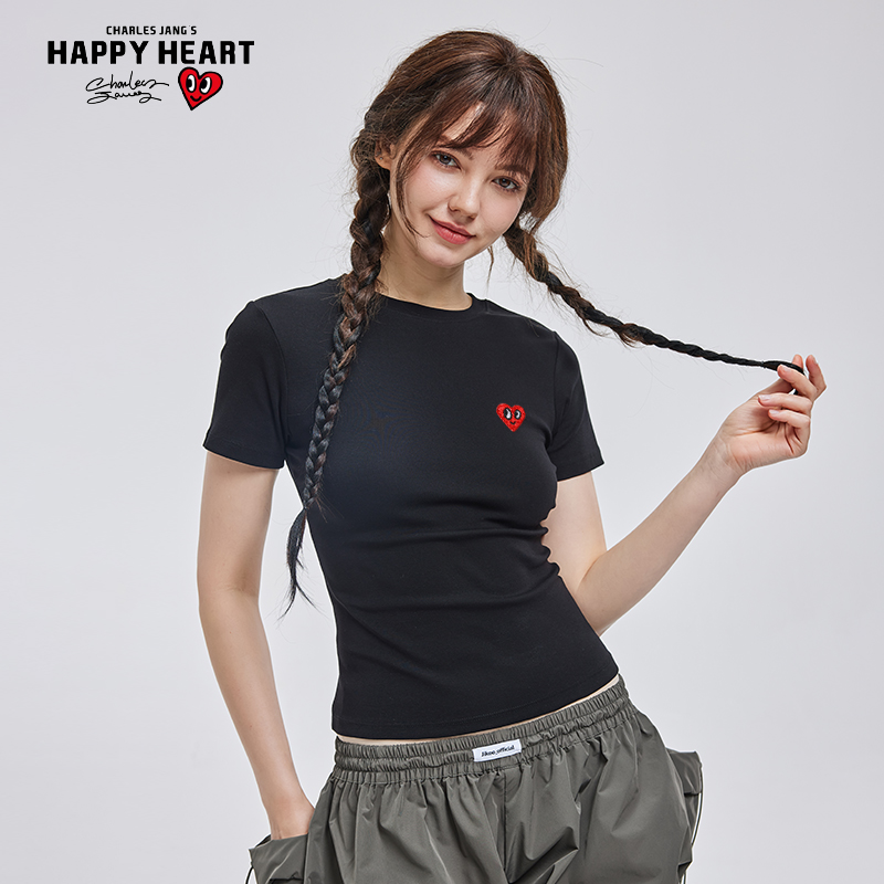 设计感T恤女白色衣服上衣 爱心刺绣短袖 查尔斯桃心 王楚然代言