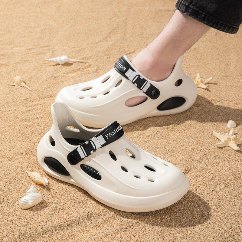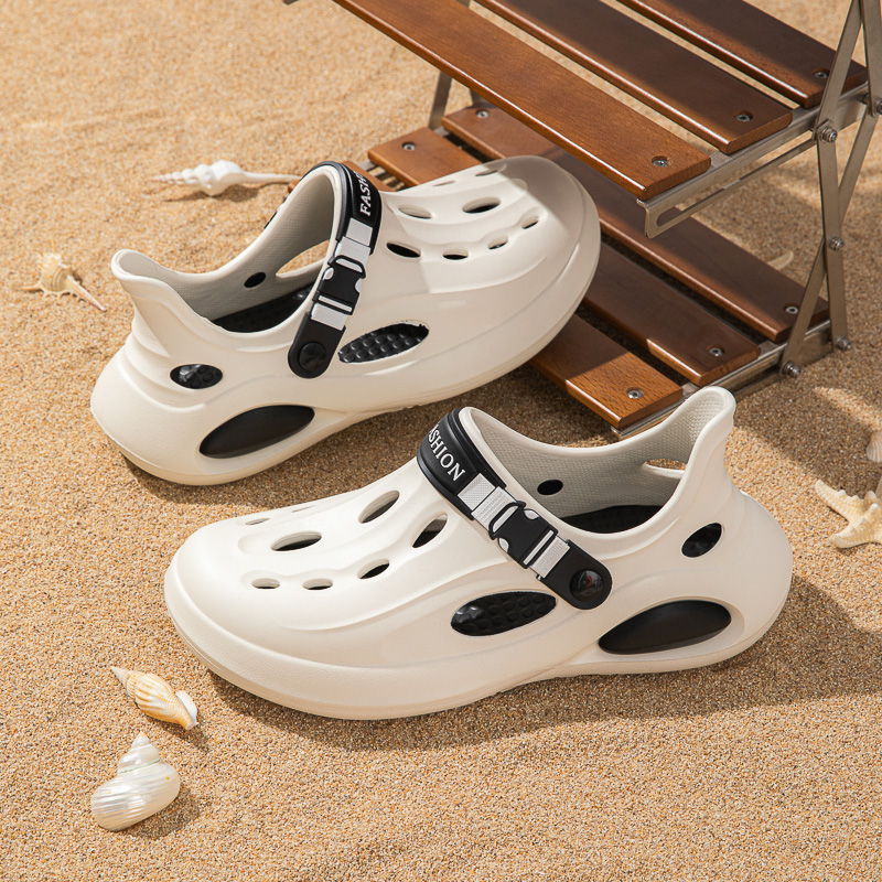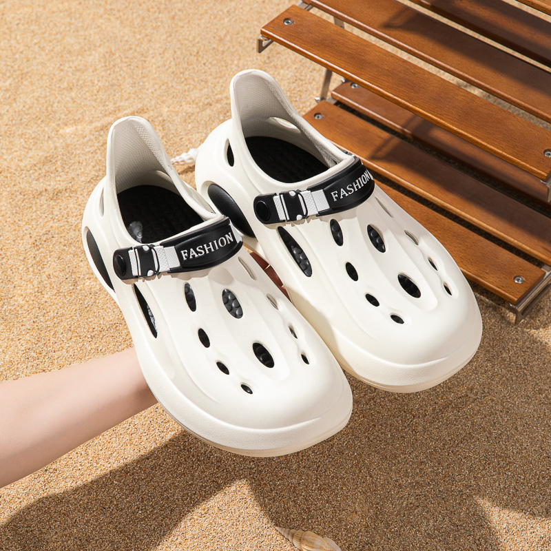 户外防滑沙滩鞋 朴西奶酪情侣厚底踩屎感洞洞鞋 包头拖鞋 夏季 男 女款