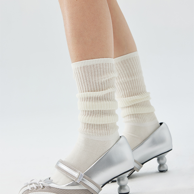 FIRSTMIX2025年夏季 袜子 中长筒百搭小腿袜纯色简约堆堆袜舒适女款