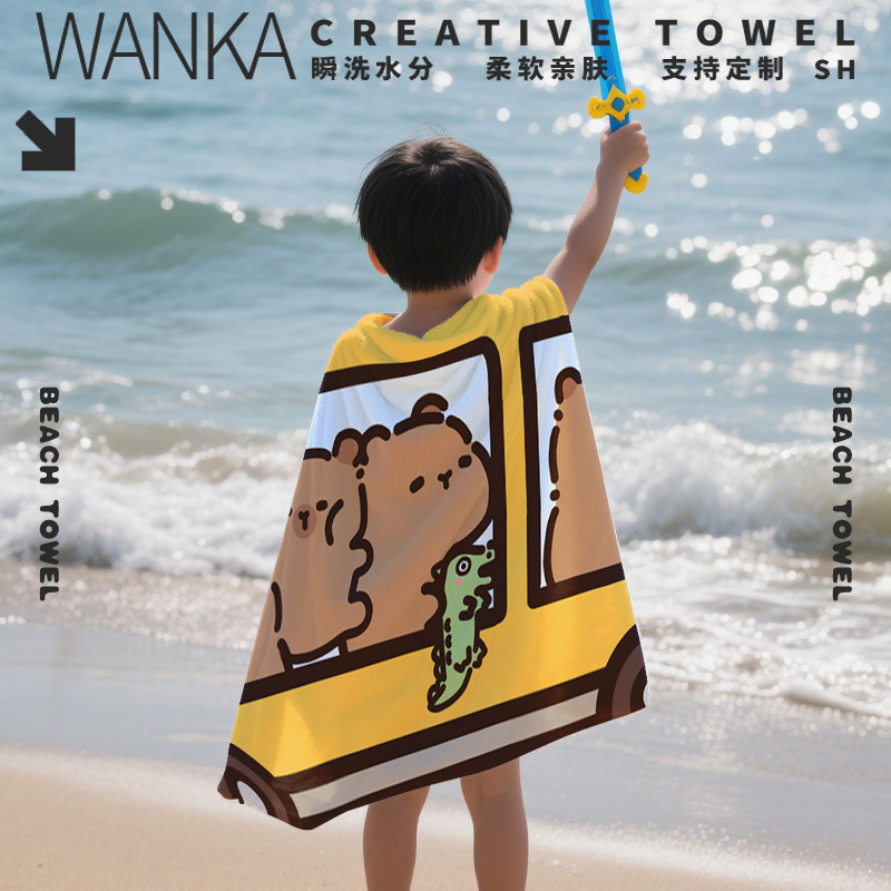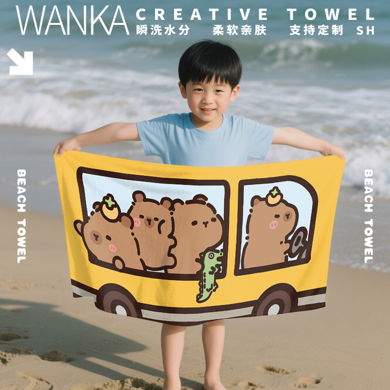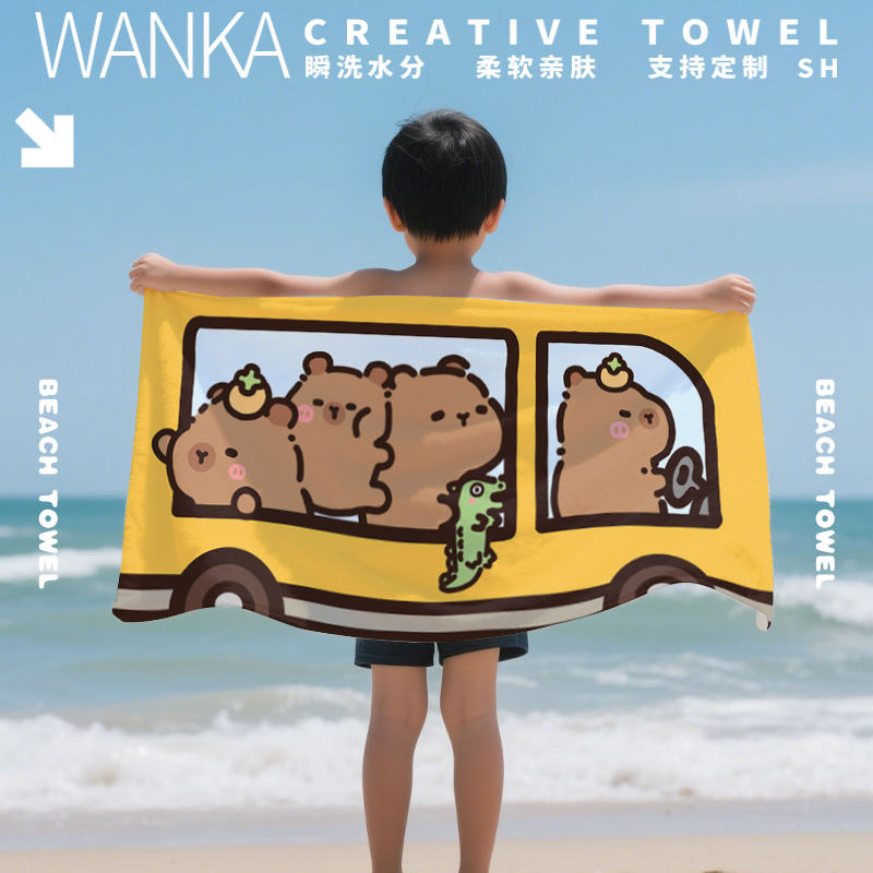 游泳专用吸水毛巾2025游泳毛巾儿童海边沙滩巾卡皮巴拉巴士汽车