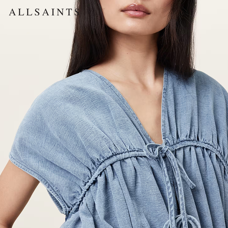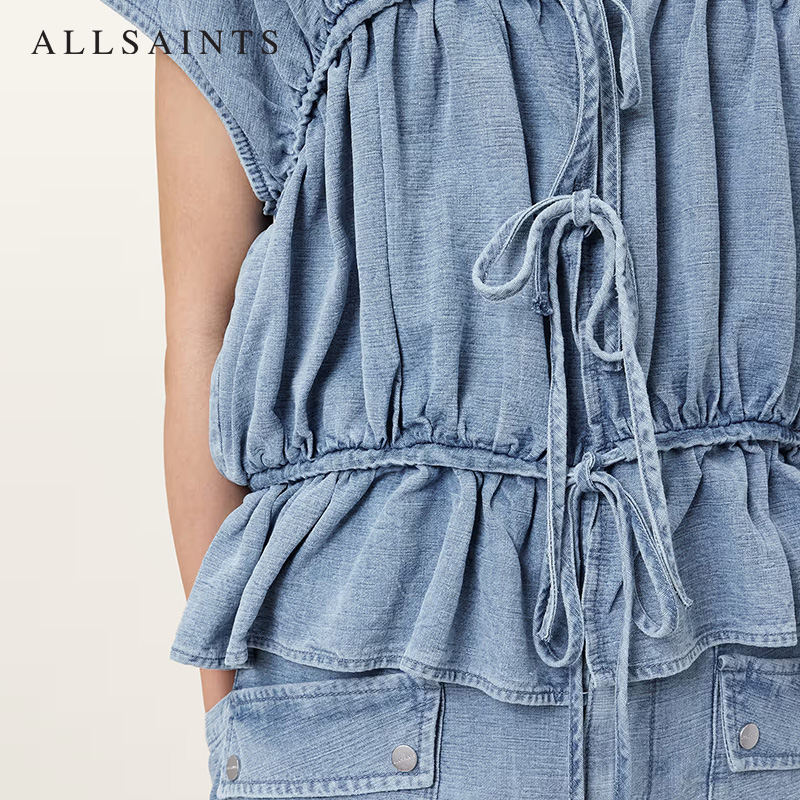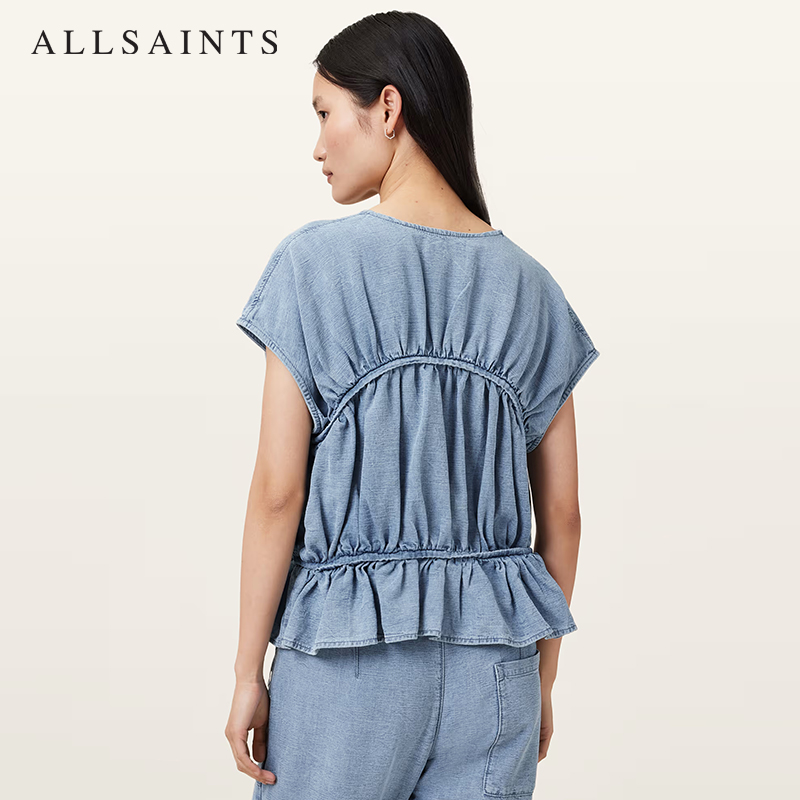ALLSAINTS女士甜酷牛仔上衣V领褶皱荷叶边2025年秋季 W093PC 女装
