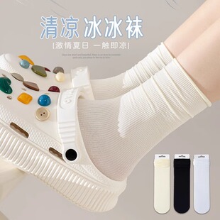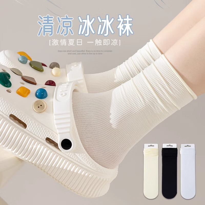 凉感薄长袜夏 夏天中筒冰丝袜长筒夏款 冰冰堆堆袜子女夏季 薄款