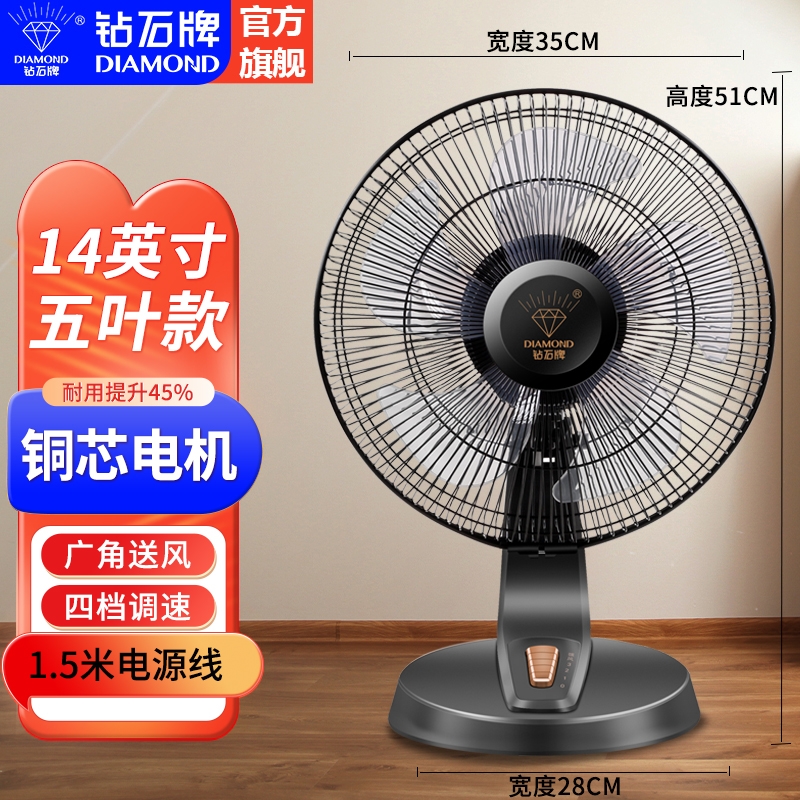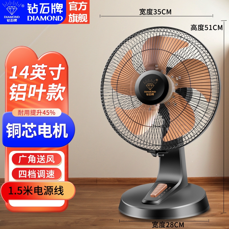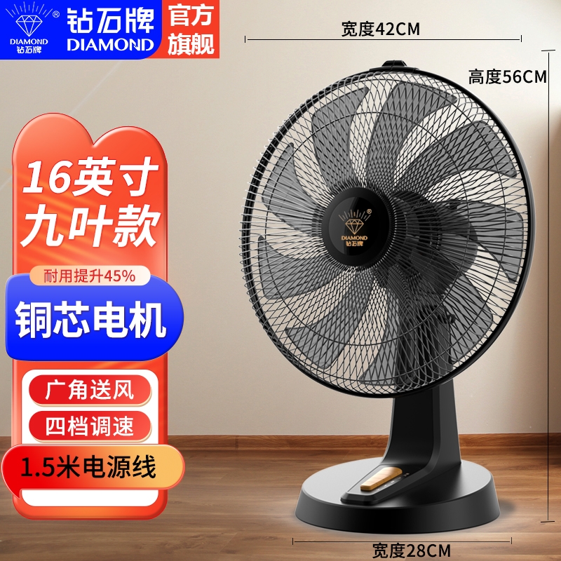 美 强力落地扇纯铜电机电扇工业风扇宿舍摇头台扇 电风扇家用台式