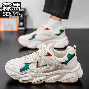 厚底增高小白老爹鞋 透气高级感网面运动休闲跑步男士 秋季 森马男鞋