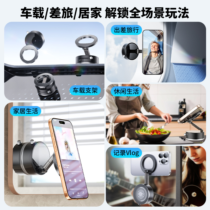 2025新款 真空吸附磁吸手机支架360度升降旋转车载导航铝合金架子