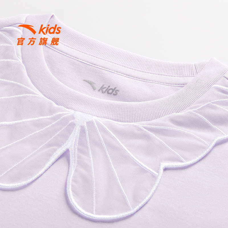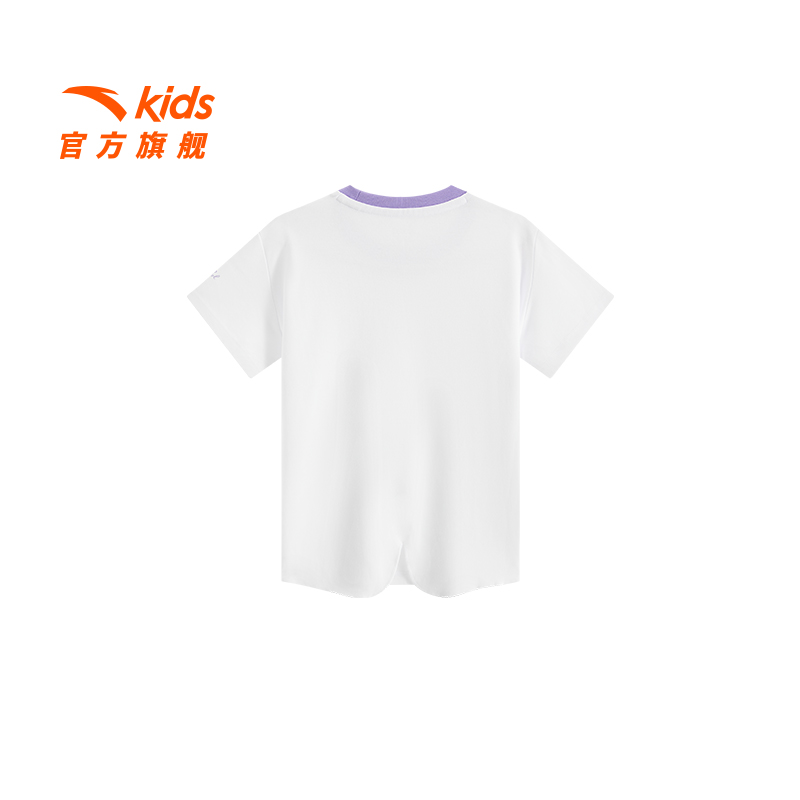 新款 2025秋季 透气舒适儿童简约纯棉短T 衫 安踏儿童女小童针织短袖
