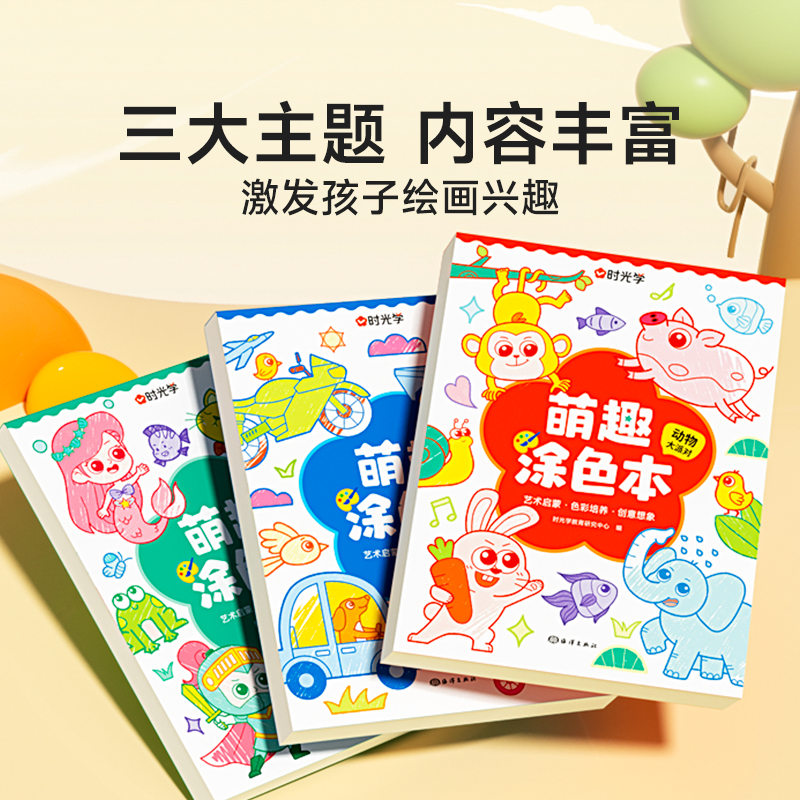 时光学儿童萌趣涂色本幼儿园儿童启蒙绘画册美术涂鸦思维大开发简笔画填色书汽车动物童话故事全套3册画画看图识物入门早教益智书