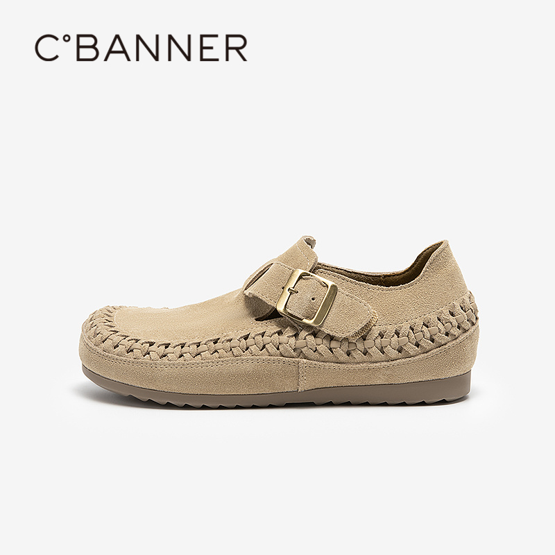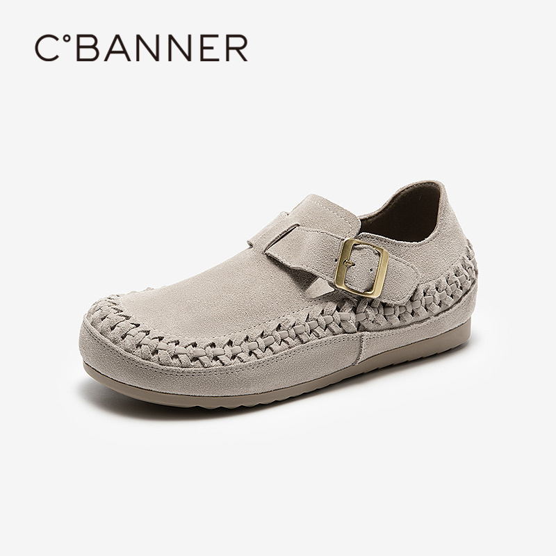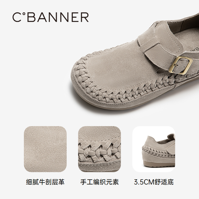 女款 全包休闲单鞋 2025秋季 复古时尚 新款 千百度厚底手工编织勃肯鞋