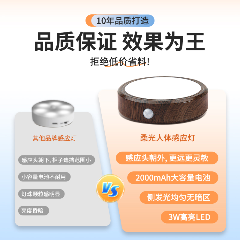 充电人体感应灯自粘感应无线免接线橱柜鞋 柜玄关酒柜灯带led灯条
